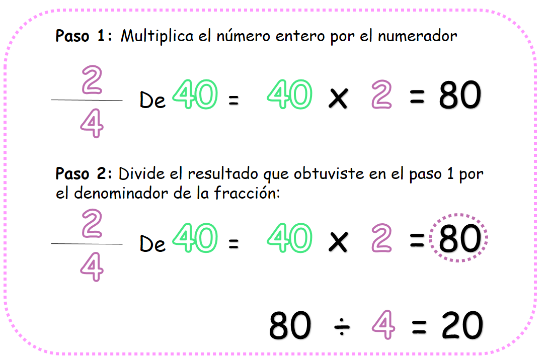 Para hallar cuánto es la fracción de un número solo tendrás que usar dos operaciones: la multiplicación y la división.